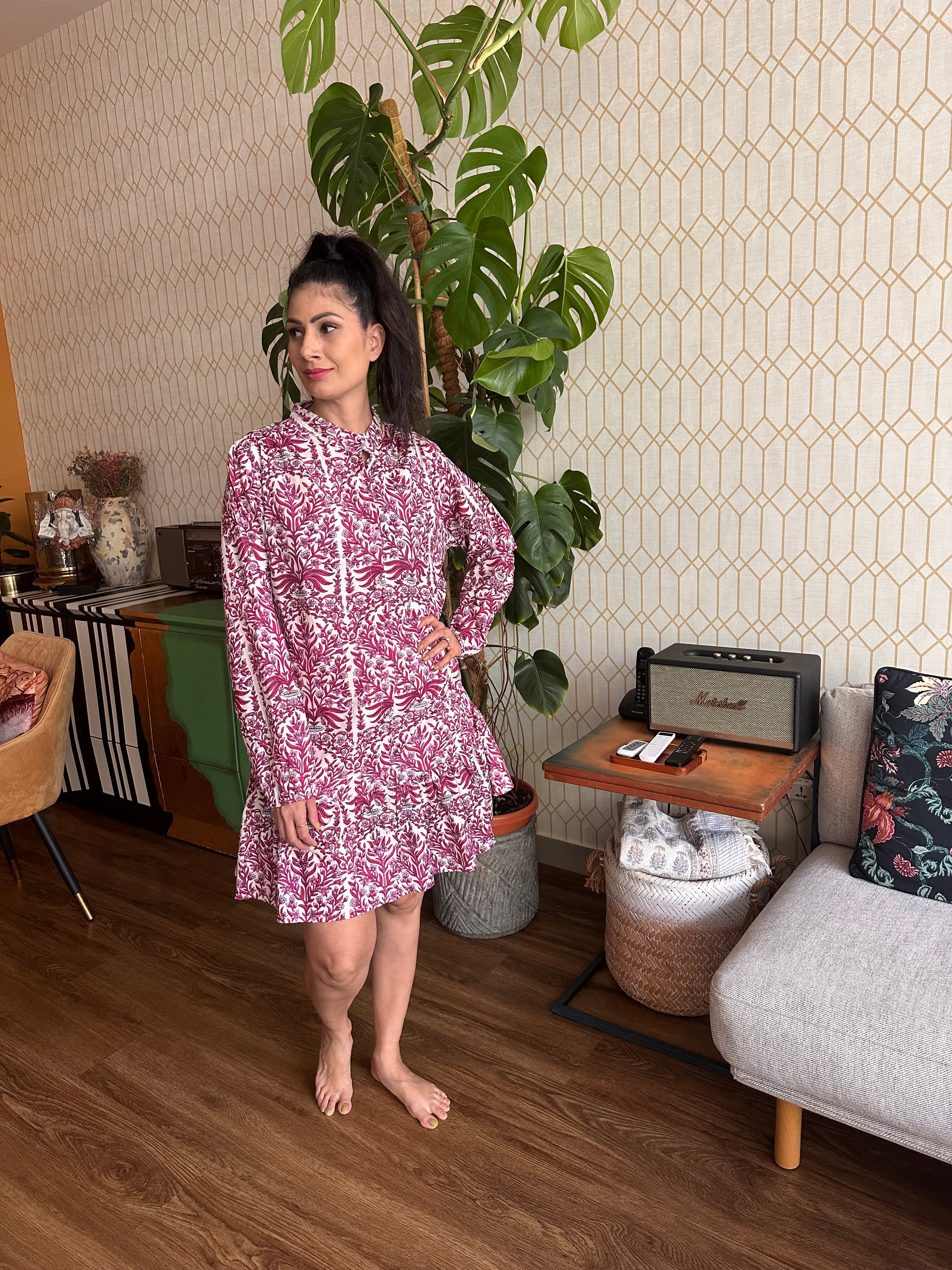 Introducing the ARIA SHORT DRESS, a thoughtfully designed piece that balances style with practicality. Crafted from soft cotton, this dress features a charming pink and white print that works effortlessly across seasons. The Chinese collar adds refined structure, while long sleeves provide versatile coverage. Functional pockets offer genuine utility without compromising the silhouette. Perfect for casual outings or relaxed professional settings, this dress delivers comfort and understated elegance in one cohesive design.